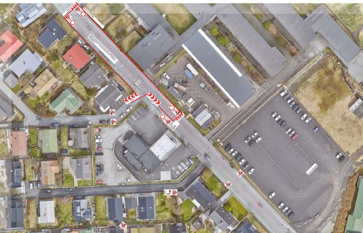 Ferðslan eftir Pedda við Stein gøta verður avmarkað til einvegis ferðslu eystureftir og forboð sett fyri parkering á norðaru síðu á vegnum frá 9. mars 2026 til 17. mai 2026 í sambandi við gerð av gongubreyt og asfaltering av gøtuni.