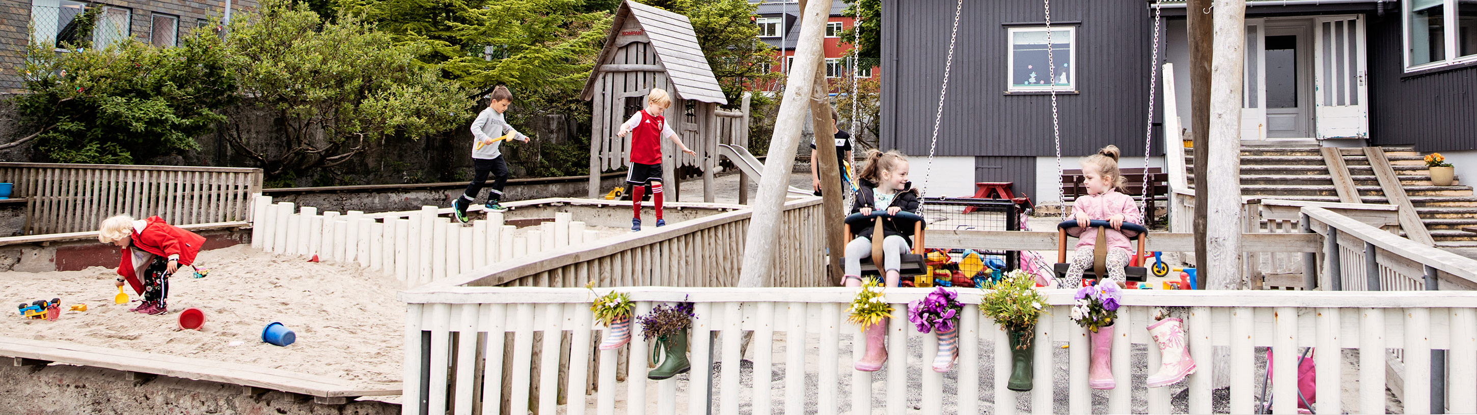 Vit hava eitt deiligt spælipláss við millum annað trampolinum, reiggjum, klintriborg, fótbóltsvølli og sandkassum. Ein partur av garðinum er lagdur av til vøggustovuna.