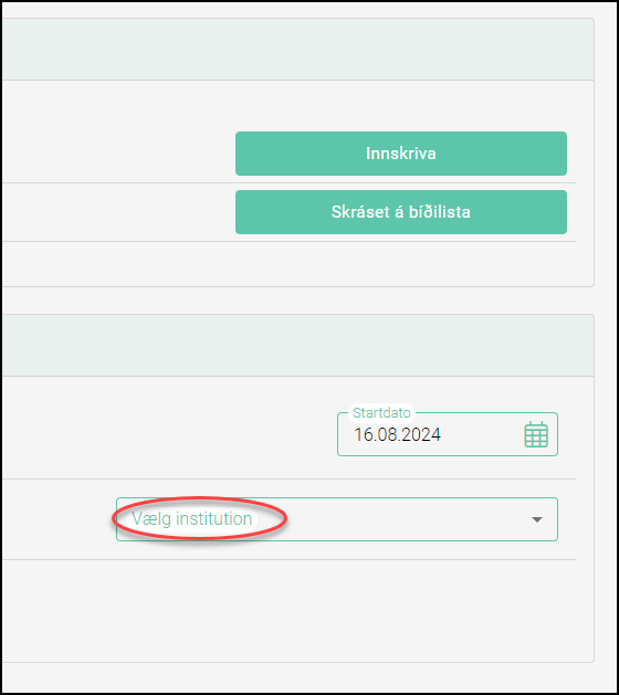 Nú skal tú velja, hvønn skúla og frítíðarskúla, tú vilt skriva barnið inn í.