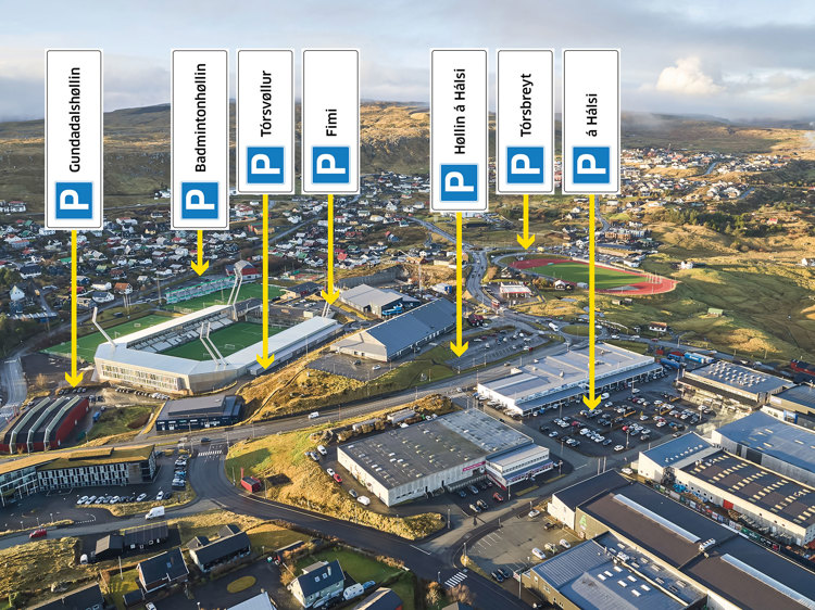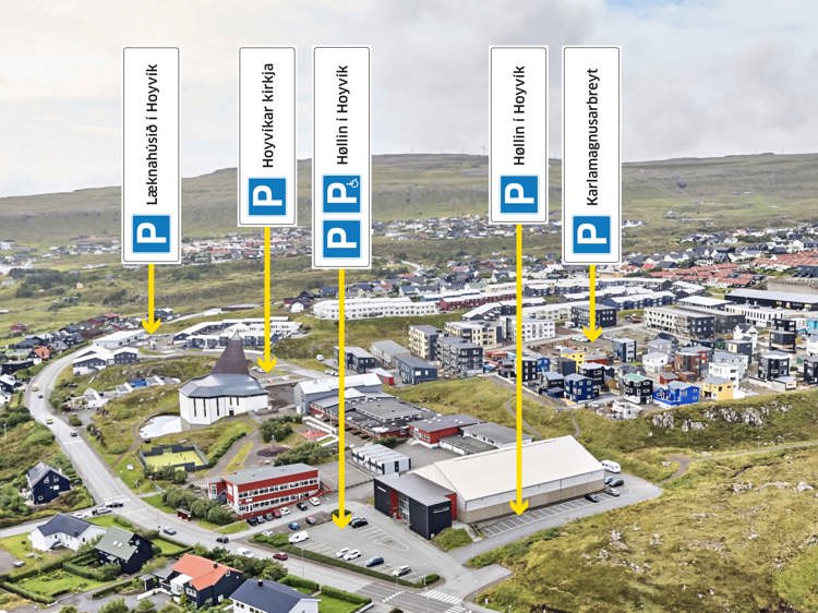 Parkeringsmøguleikarnar við valstaðið í Hoyvík sært tú her:
