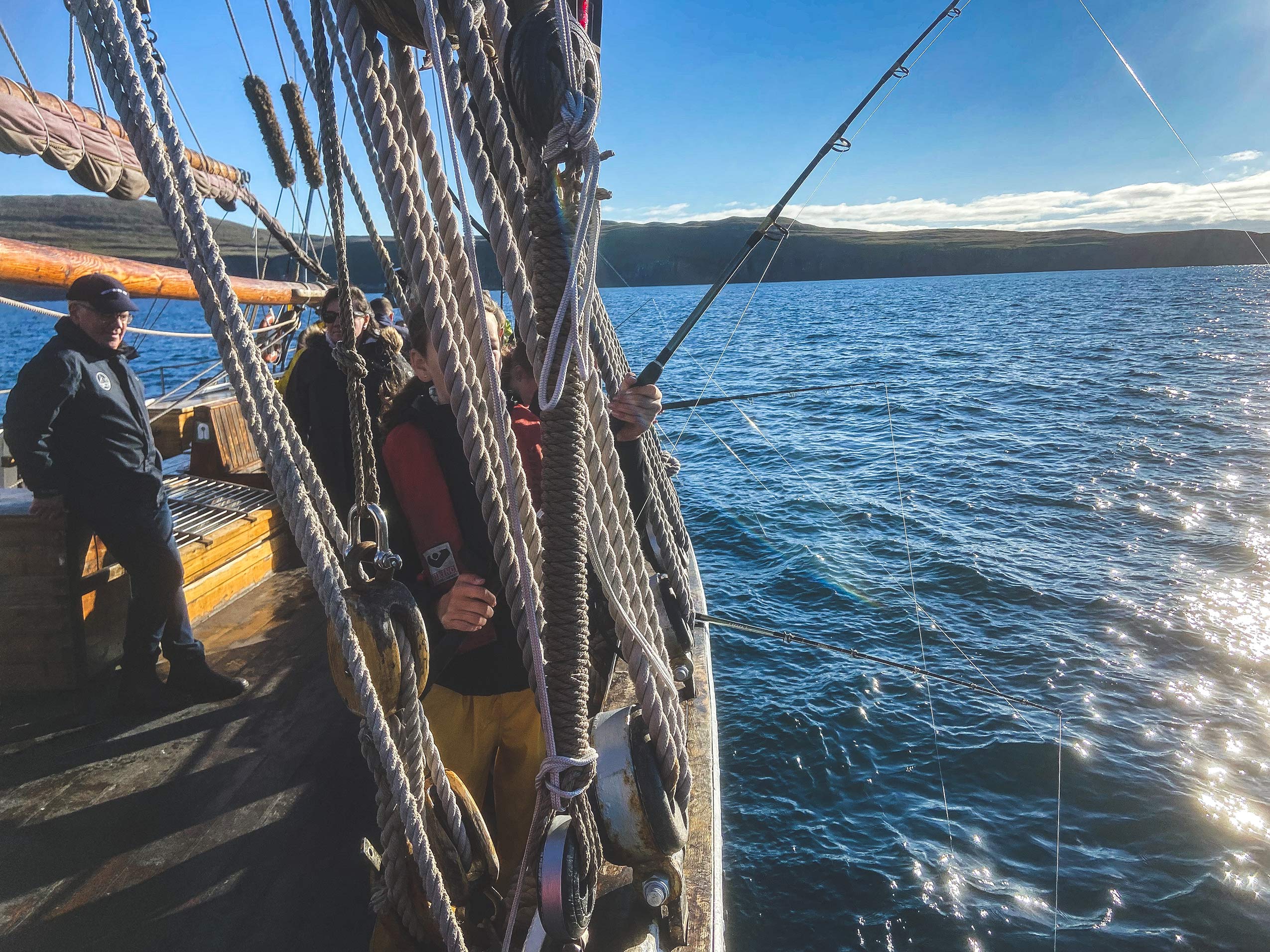Hvør flokkur fiskar í umleið tveir tímar. Vit fiska í bakborðs síðu við tráðu og pilki, og í mesta lagi 12 tráður kunnu vera úti í senn. Fiskur minni enn 30 cm telur ikki við og verður sleptur út aftur.