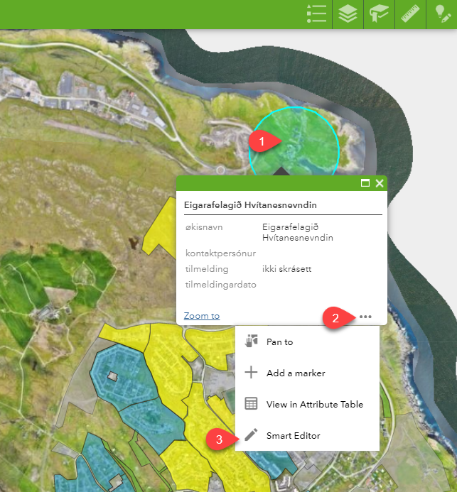 1. Suma inn á kortinum og trýst á økið, tit ynskja at rudda.