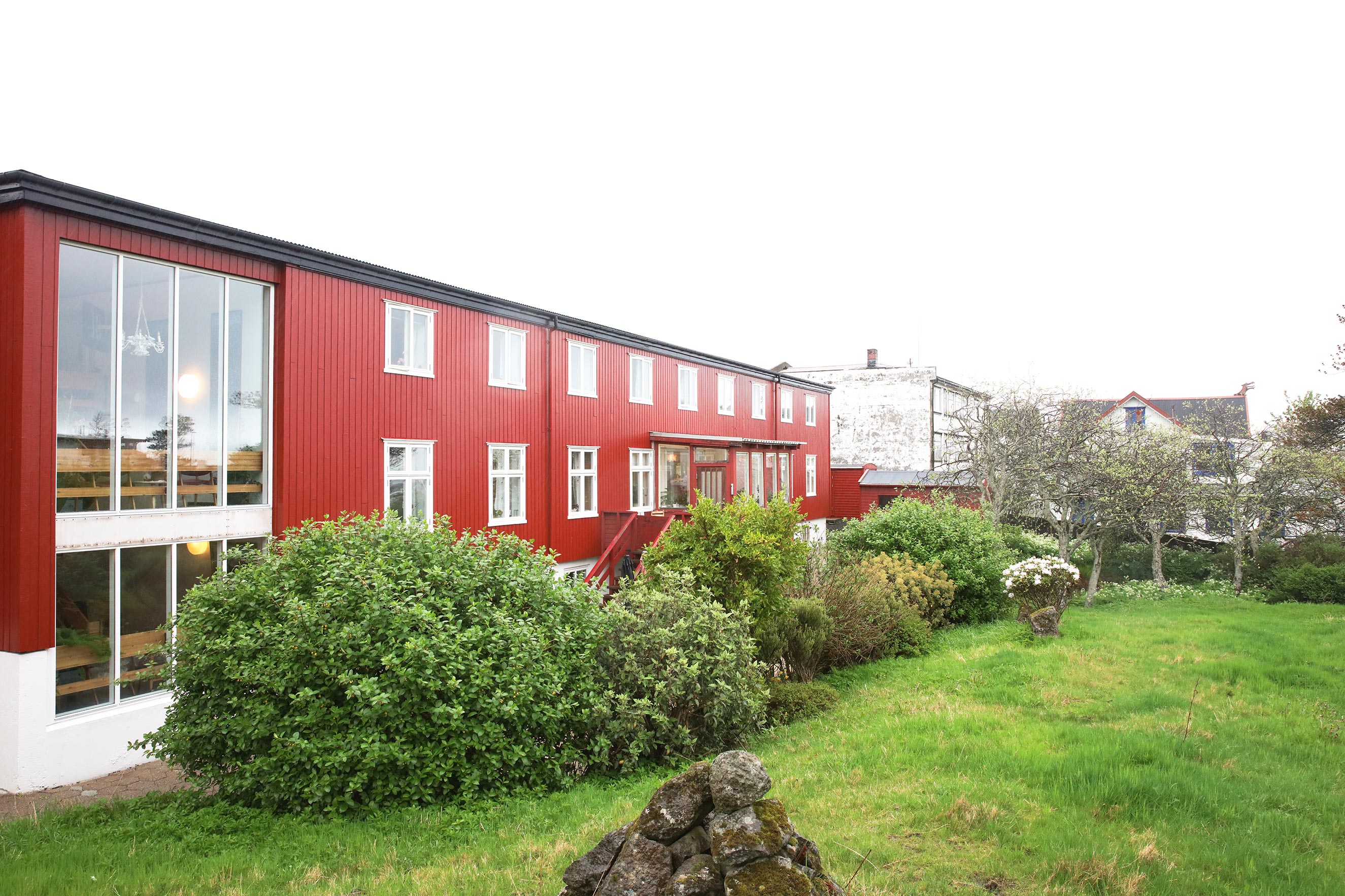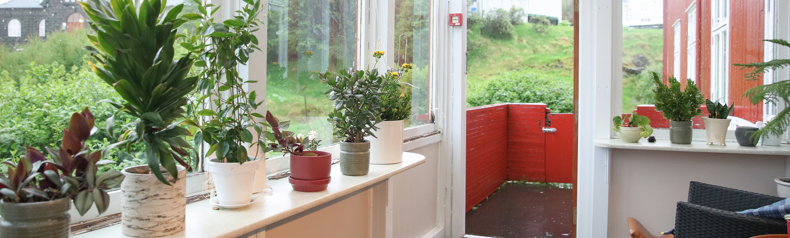Á sumri fara vit út at eta ella fáa okkum drekka í havanum aftan fyri húsini, tá hetta er møguligt.